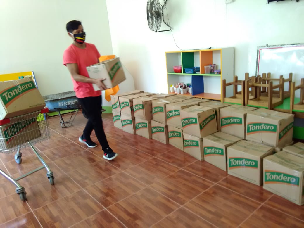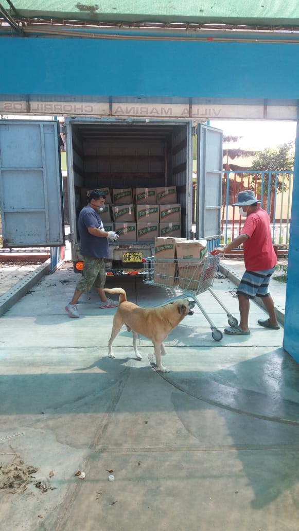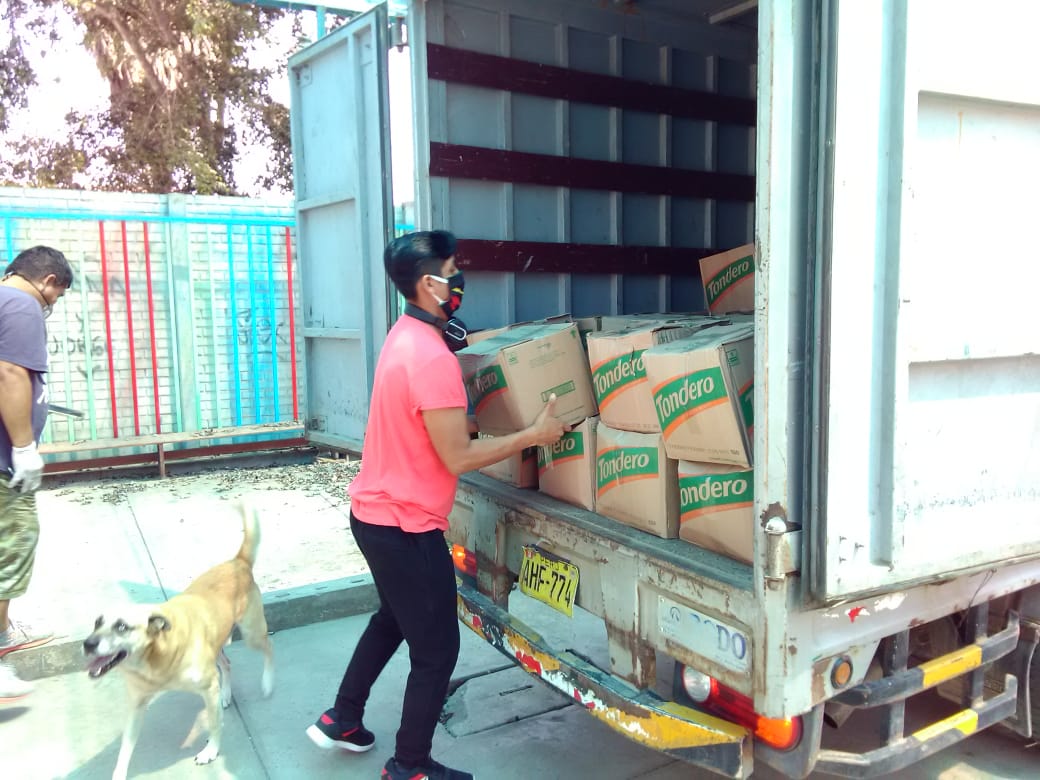 Después de las primeras entregas pusimos en marcha un "envío piloto" de 130 canastas de alimentos básicos desde el colegio Virgen de los Niños de Chorrillos. Éstas fueron repartidas bajo un estricto protocolo de seguridad (creado con el asesoramiento de expertos en Ayuda Humanitaria con amplia experiencia de trabajo en campos de refugiados).
